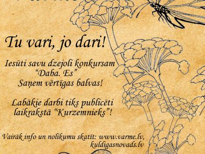 Vārmes pagasts Tiek izsludināts dzejas konkurss “Daba. Es” Kuldīgas novada rezidence radošajiem autoriem 2023 un Vārmes pagasta pārvalde izsludina dzejas konkursu “Daba. Es”, ...