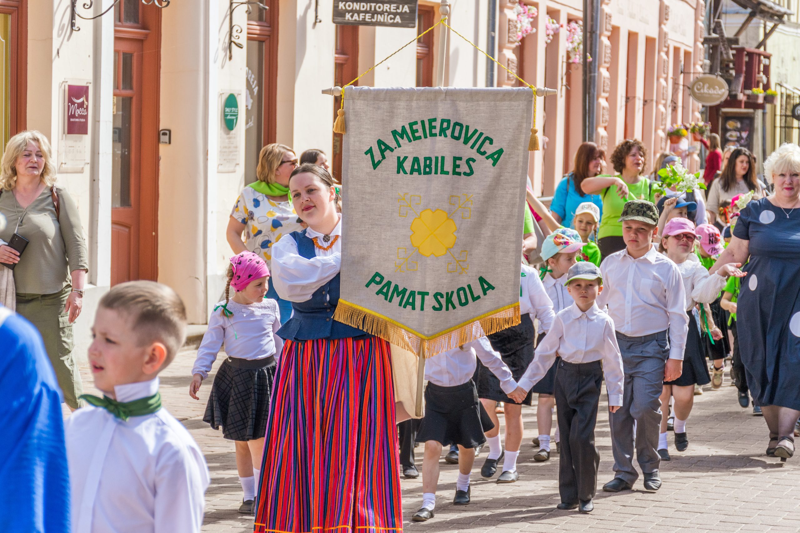 Mazie dziesmu un deju svētki tika ieskandināti ar svētku gājienu. Tas sākās no Liepājas ielas gala (no kajenīcas “Kursas Zeme”), tālāk dalībniekiem virzoties pa Liepājas, Smilšu un Pētera ielām, bet galamērķis – Pilsētas estrāde. Mazos dziedātājus un dejotājus gājienā atbalstīja arī prāvs vecāku un līdzjutēju pulks. Priecīgo brīdi, atrašanos un uzstāšanos uz Pilsētas estrādes skatuves, varēja izjust vairāk nekā 400 jaunie dziedātāji un dejotāji.