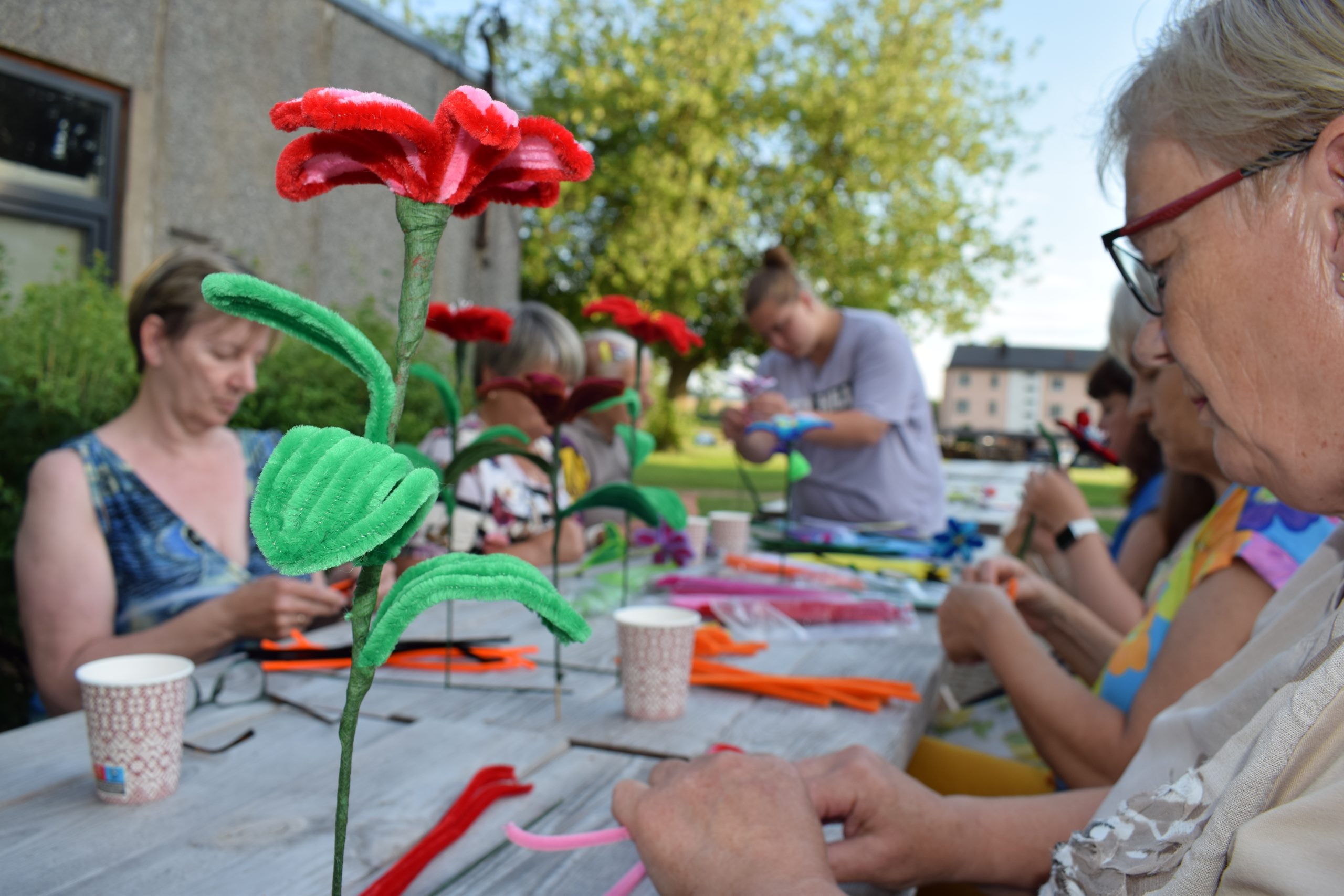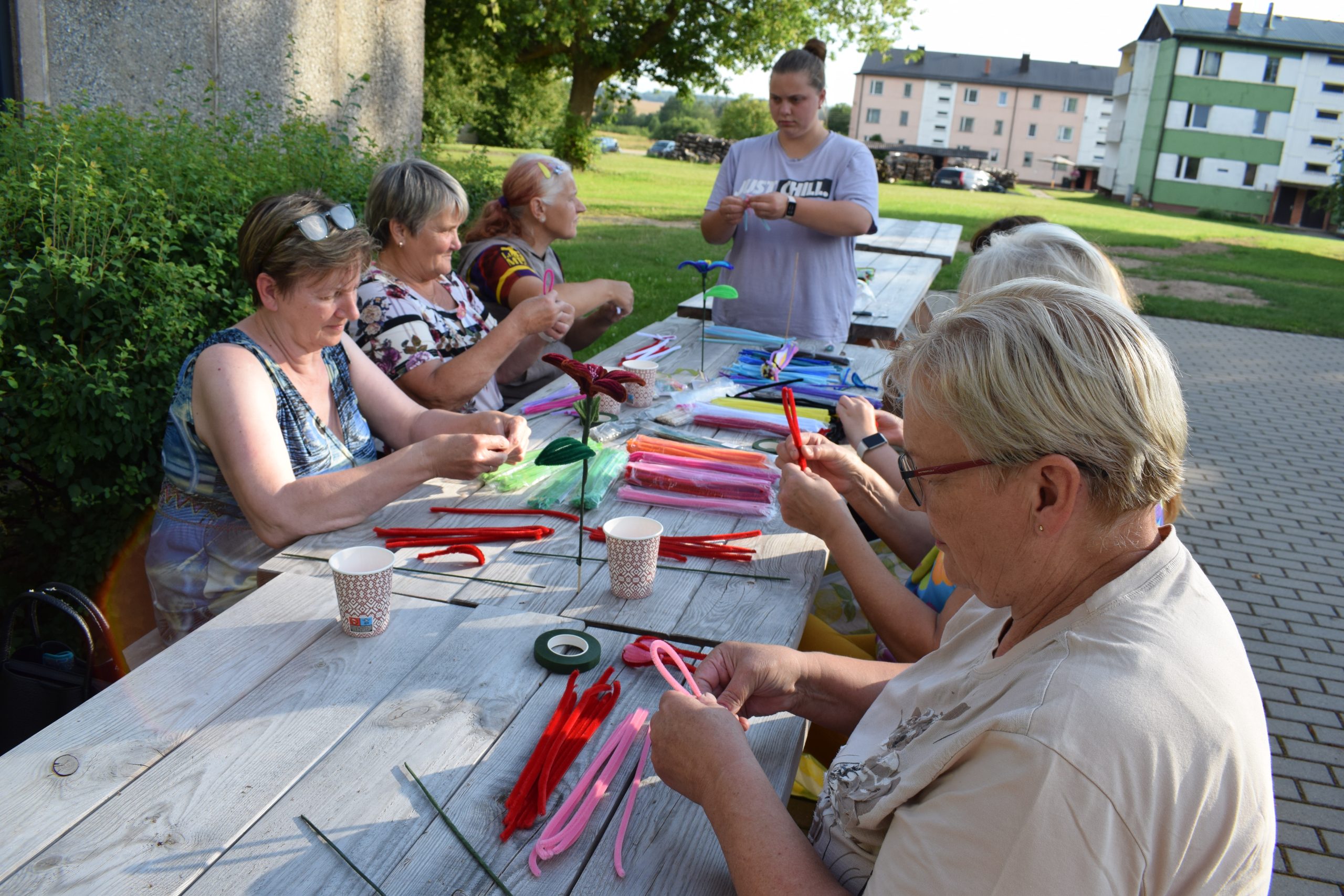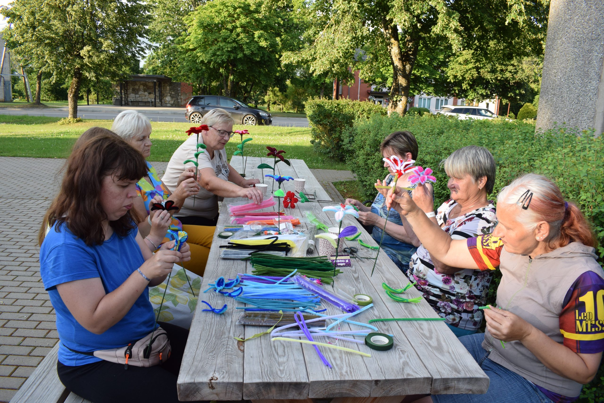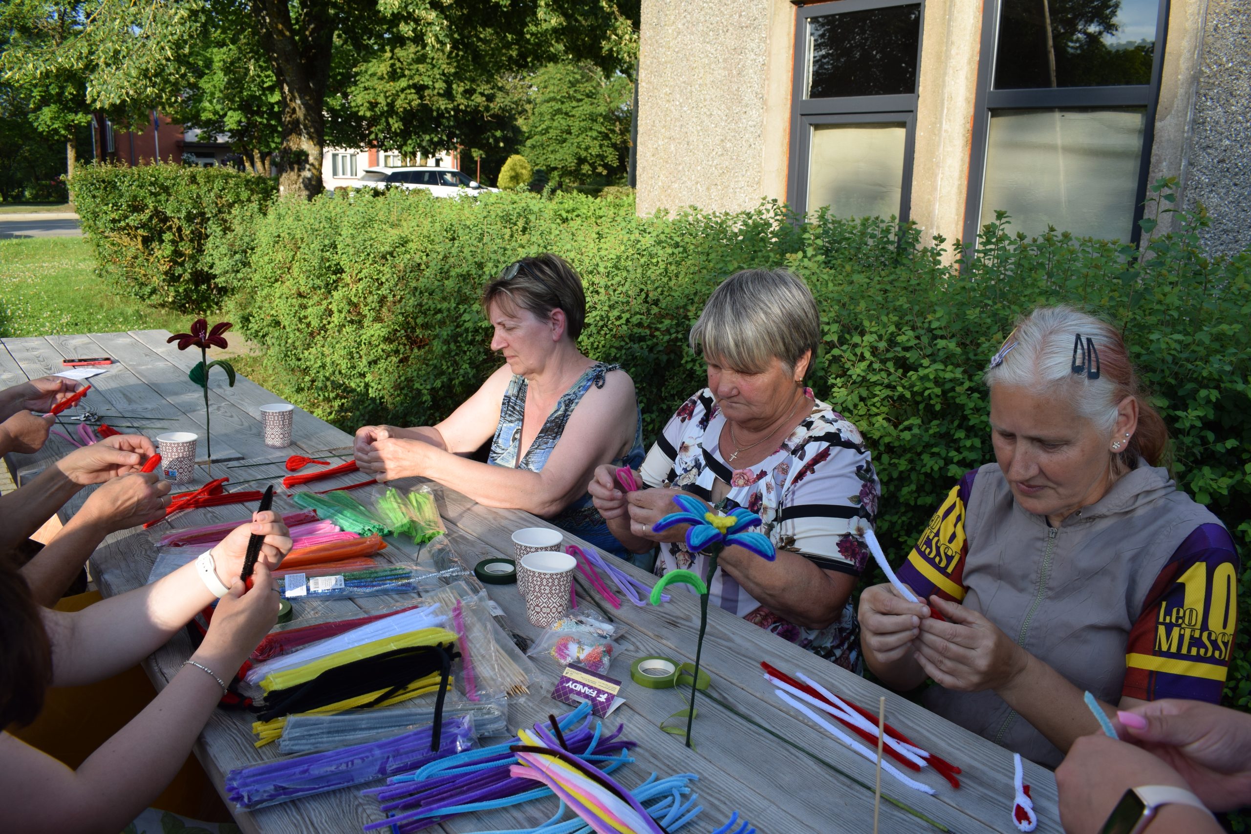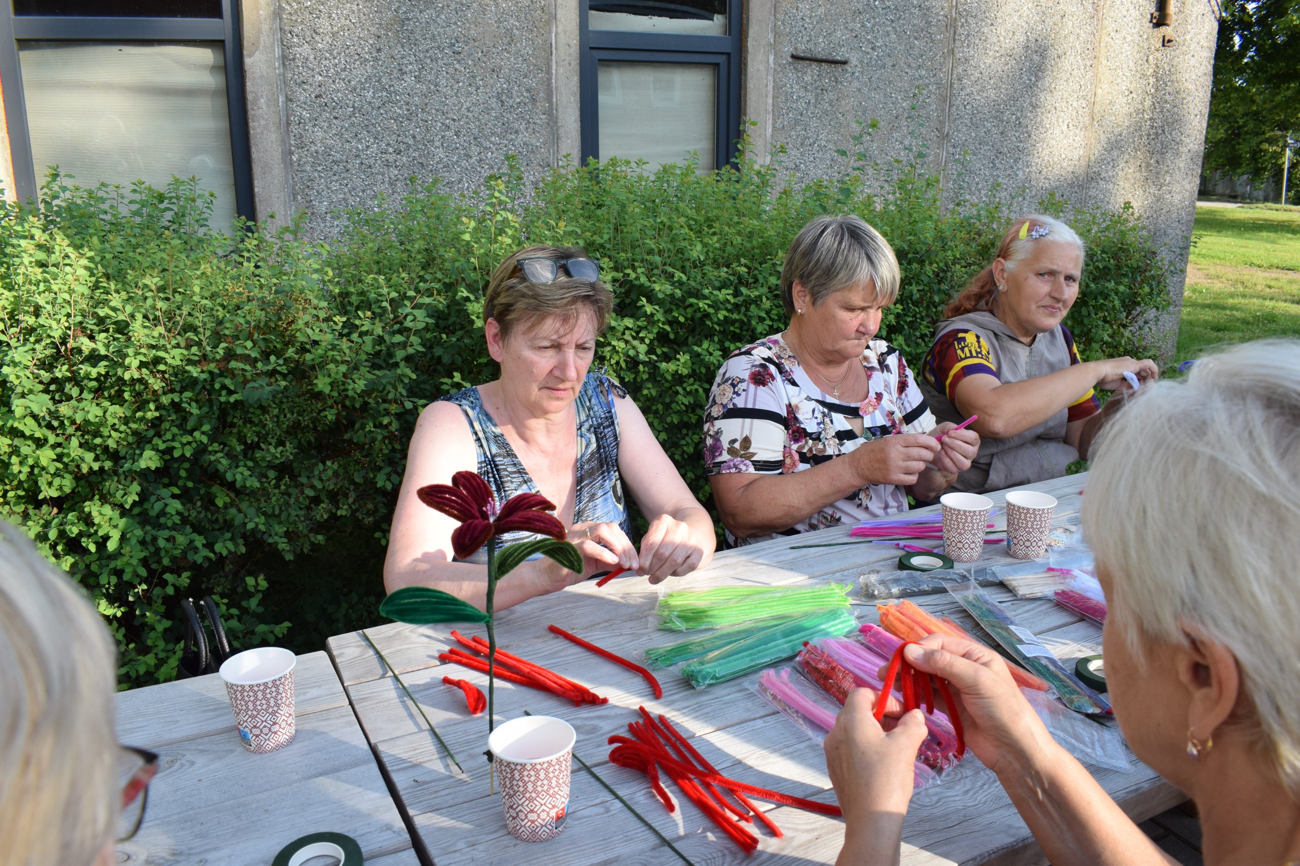 Dalībnieki ar patiesu ieinteresētību un prieku apguva šenila stieplīšu pārvēršanu skaistās ziedu formās. Dažiem tā bija pirmā pieredze, citi jau darbojās pārliecinoši. Darinātie ziedi bija tikpat daudzveidīgi kā paši meistari – viens maigās pasteļkrāsās, cits košs kā vasaras pļava. Šie darinājumi ne tikai priecēs acis vēl ilgi, bet arī kalpos kā skaists atgādinājums par kopā pavadīto laiku.