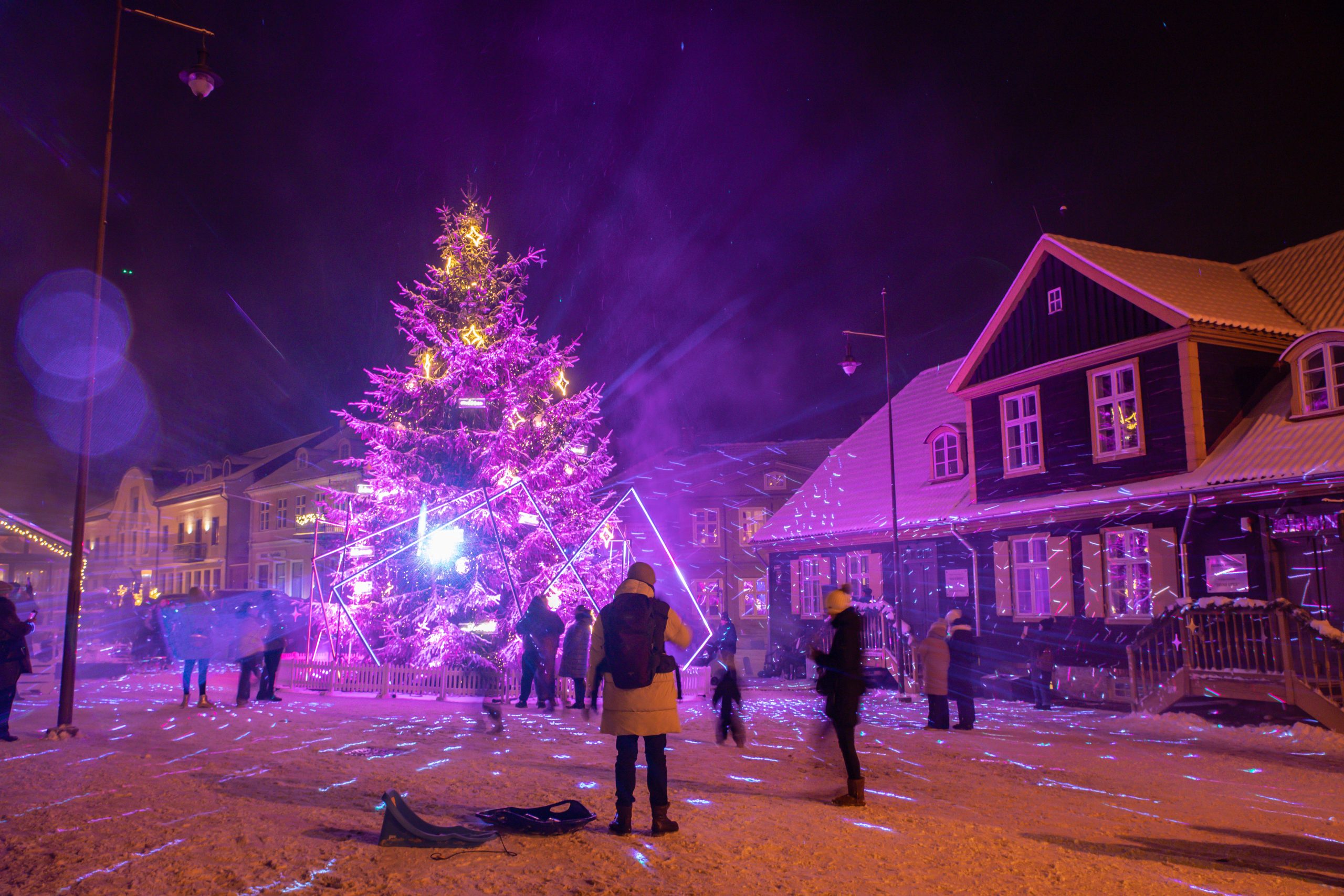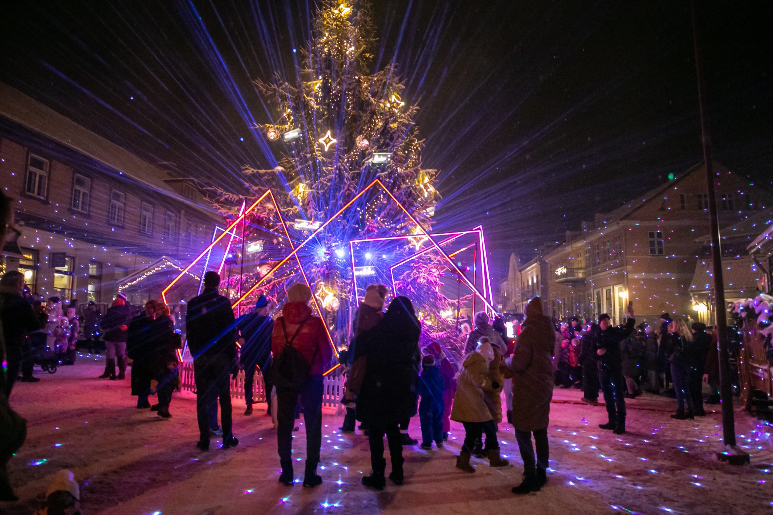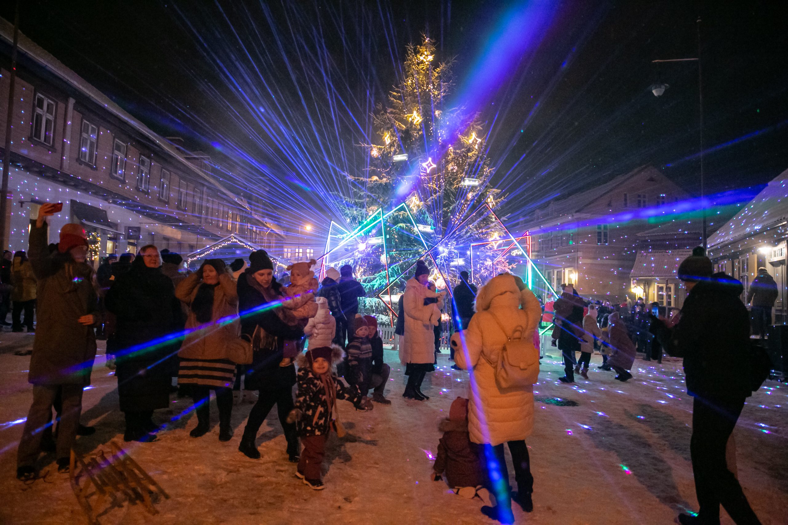 2.decembra pievakarē Rātslaukumā pilnā krāšņumā iemirdzējās Kuldīgas galvenā svētku egle. Košajai skaistulei iedegties neskaitāmu lampiņu gaismā palīdzēja pats Ziemassvētku vecītis un viņa jautrie rūķīši, kuri ziemas festivālā “Notici brīnumam” ar dziesmām un dejām pamanījās uzburt pasakainu atmosfēru.