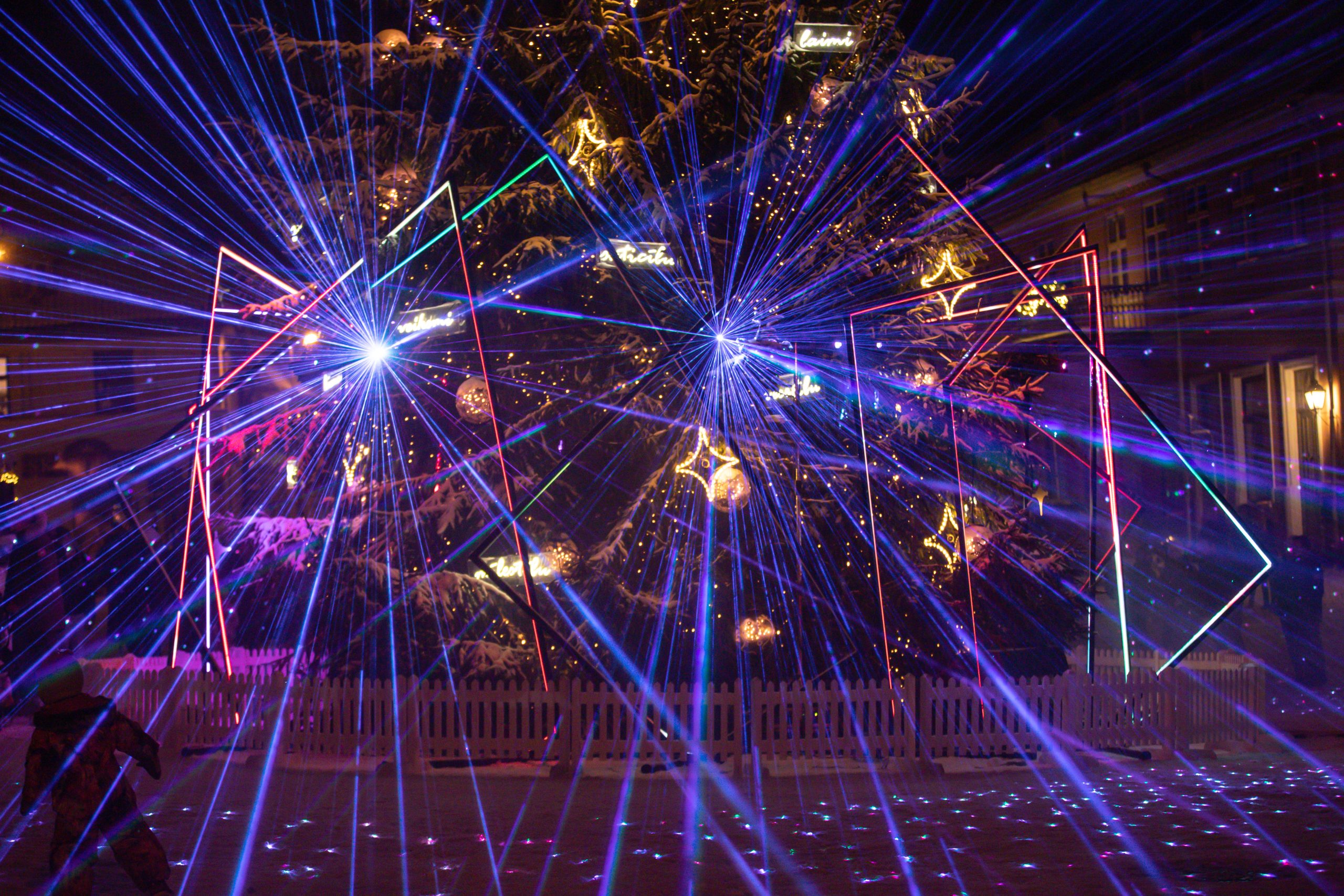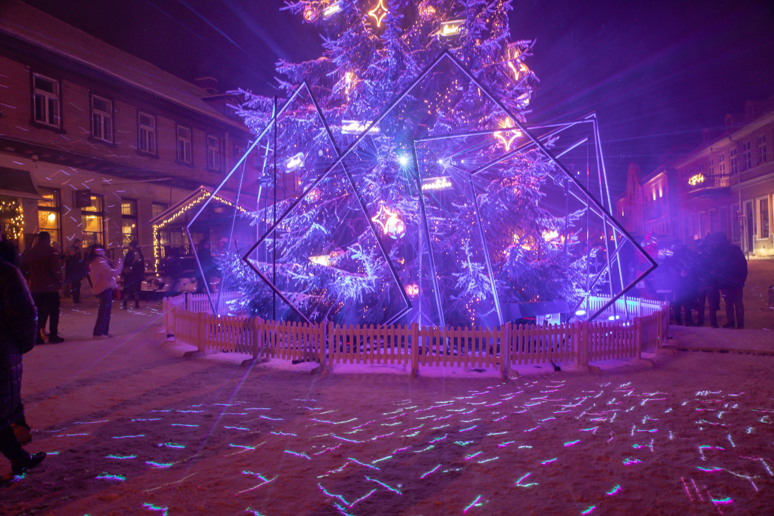 Spoži iemirdzējusies Kuldīgas skaistākā egle